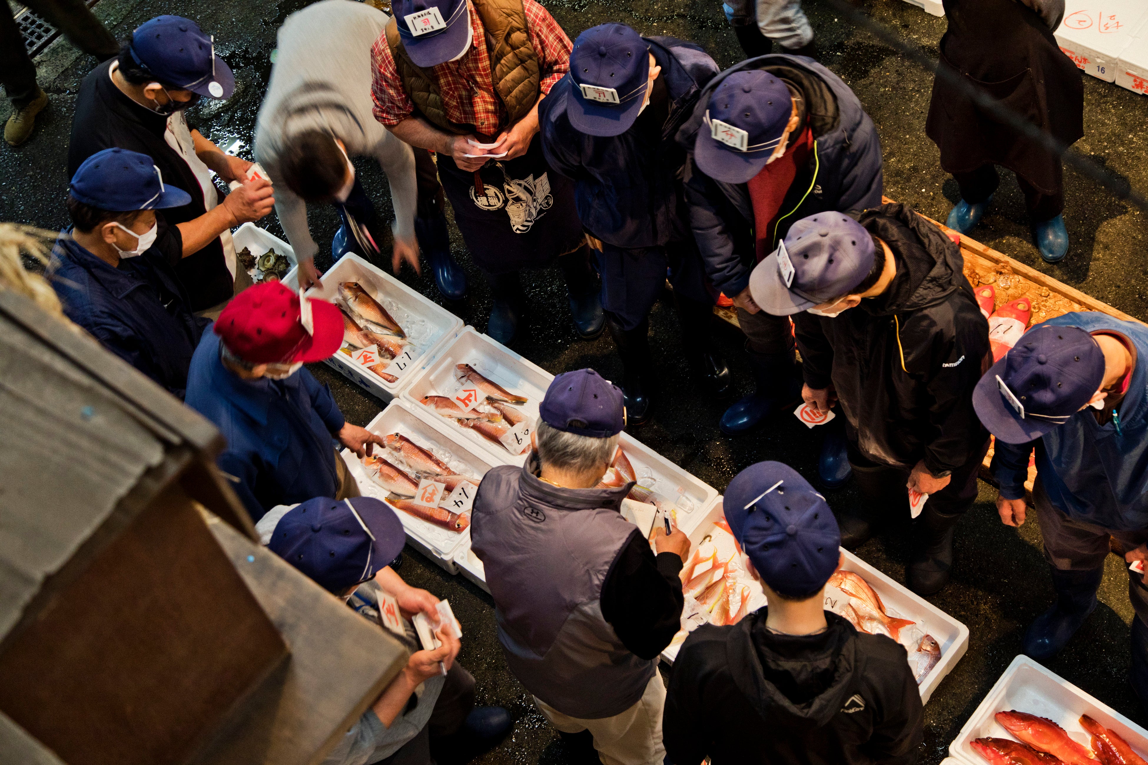 朝の魚市場で自分だけの魚を買付けるところから体験はスタートします。
