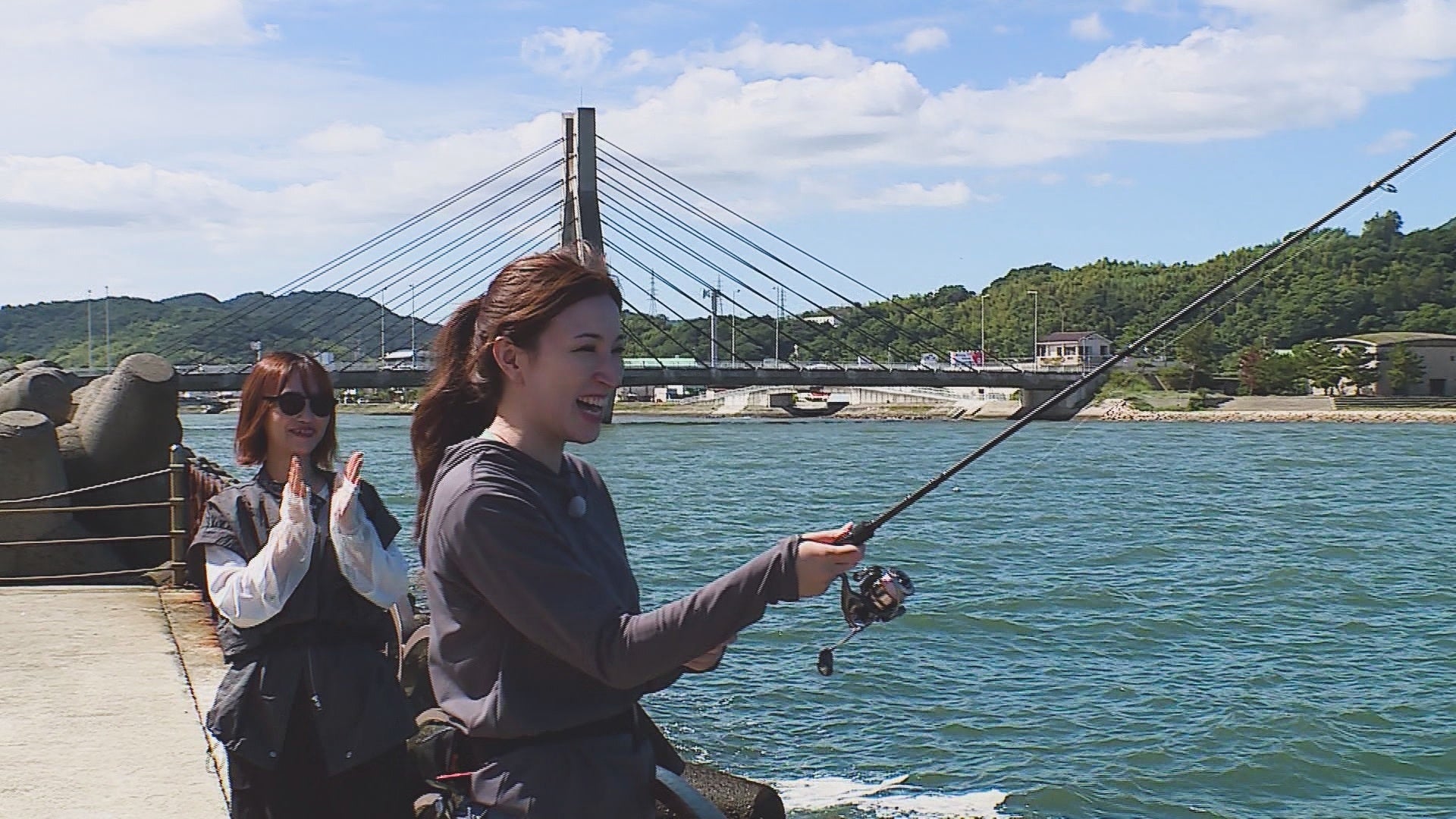 番組3度目の登場となったテレビ大阪・ウーデン ジェニファー 里沙アナウンサー。今回はアジングなどライトゲームに精通する釣りガール「ちぃ。」こと、よこやまちほと、淡路島で波止釣りに初挑戦します!
