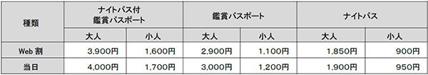 【料金】上記、ナイトパスまたはナイトパス付鑑賞パスポートのとおり