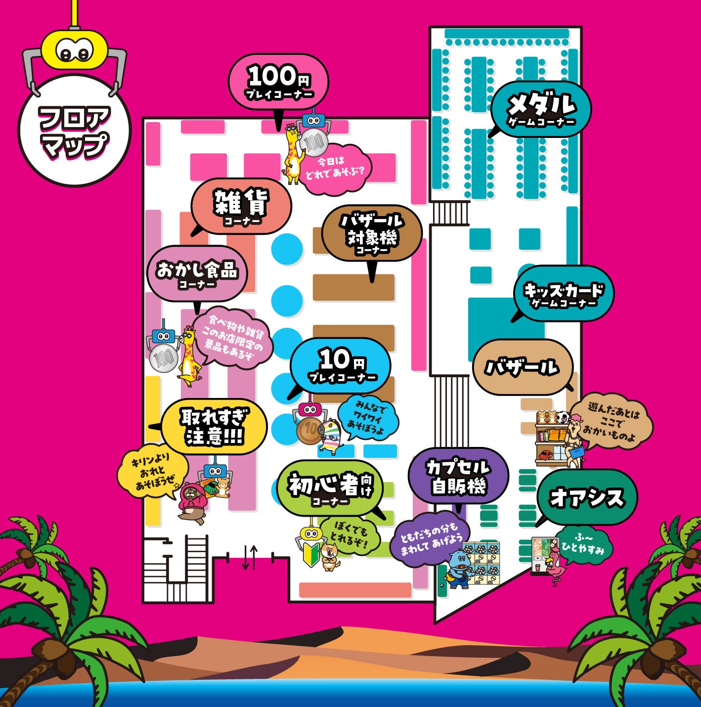 クレーンゲーム/190台 メダルゲーム/109台 体感その他/2台 キッズカード/6台 カプセルトイ自販機84面