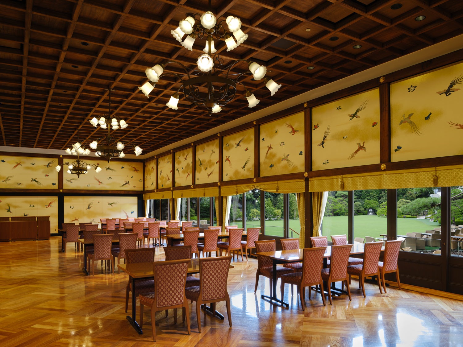 四季折々の花や緑に囲まれる、広大な庭園に面した開放的なラウンジ。赤坂仮皇居御会食所をそのままに、歴史あるインテリアが上質な時間を紡ぎます。お食事は洋食を中心に豊富なメニューをご用意。また、ダイニングスペースにはバーカウンターも兼ね備え、少し贅沢な時間をお過ごしいただけます。