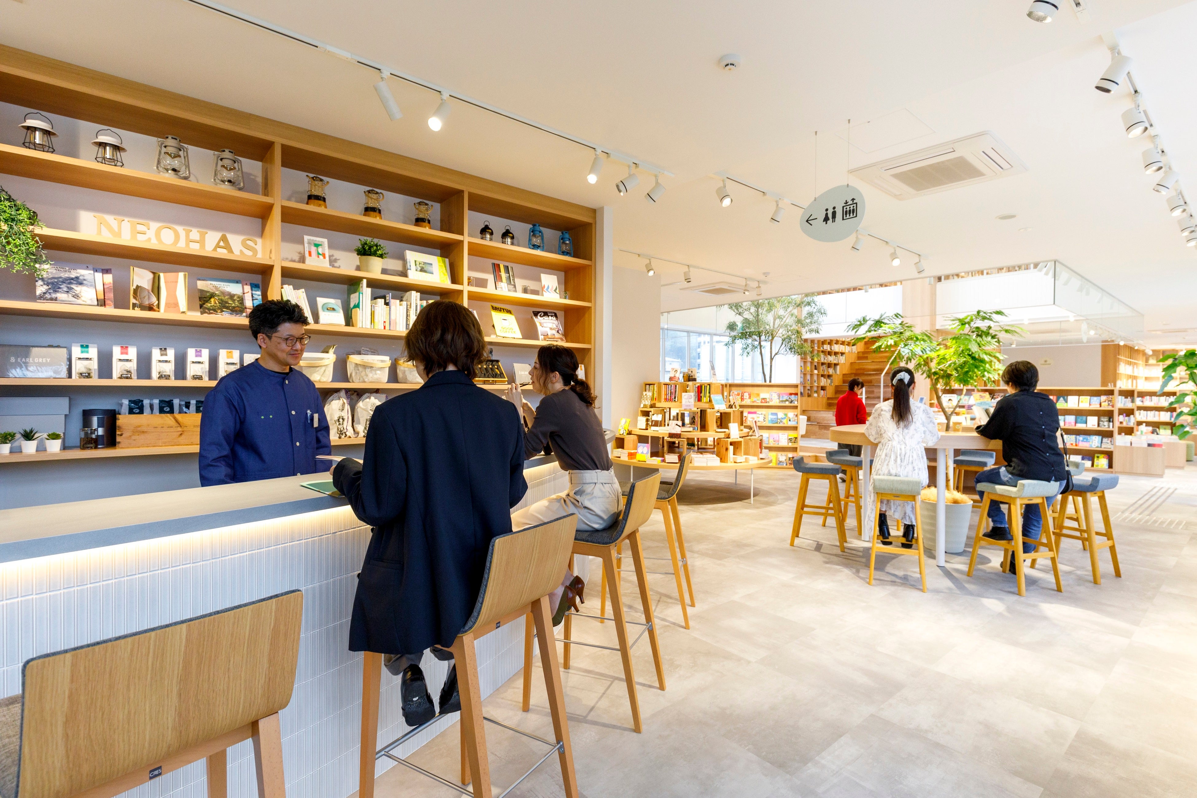「ねをはすBook&Cafe」は、170坪ほどの売り場に約2万冊の本を揃えています。1階は文学作品や実用書、児童書など、年齢や性別を問わず幅広い方々が日常的に楽しめるラインナップとしました。2階はアートや自然科学、社会・歴史などのジャンルを中心に、専門的なタイトルを織り交ぜた、興味・関心を深掘りできる空間となっています。また、2階にある洞窟のような佇まいの本棚では、季節ごとのテーマでブックディレクターが選書した本を展開し、思いがけない本との出会いを演出します。併設のカフェはテイクアウト利用も可能で、町中のコーヒースタンドのように気軽にお立ち寄りいただけます。