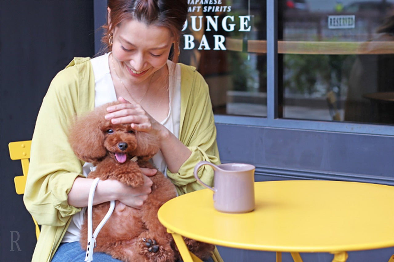 カフェのテラス席にて、わんちゃんと一緒にお過ごしいただけます。