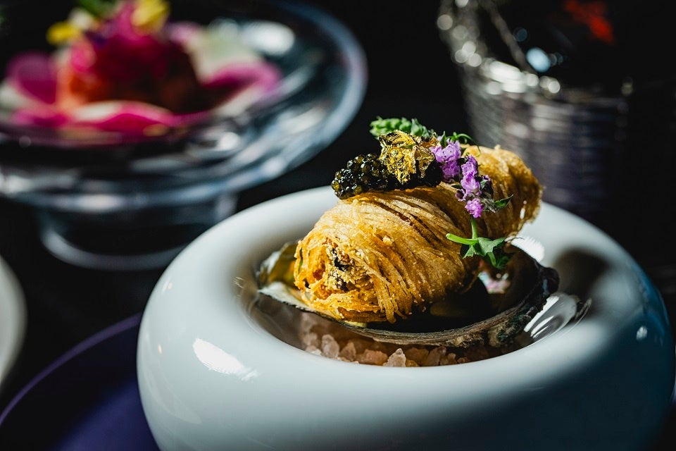 ・エゾアワビのとうきび粉フリット キャビア添え