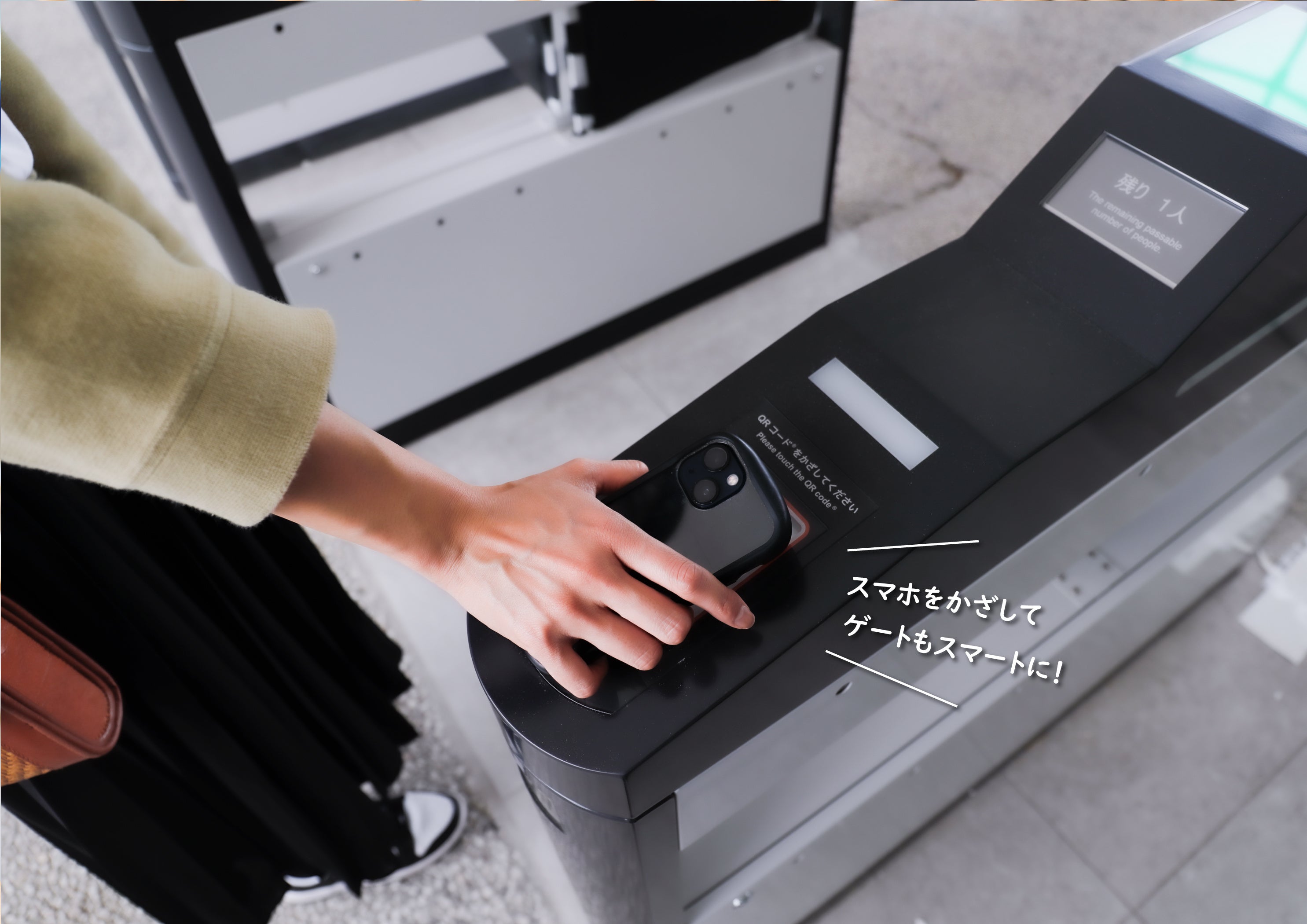 来館時はスマートフォンに表示されるQRチケットを入館ゲートにかざすだけでチケットレスで簡単に入館することができます。