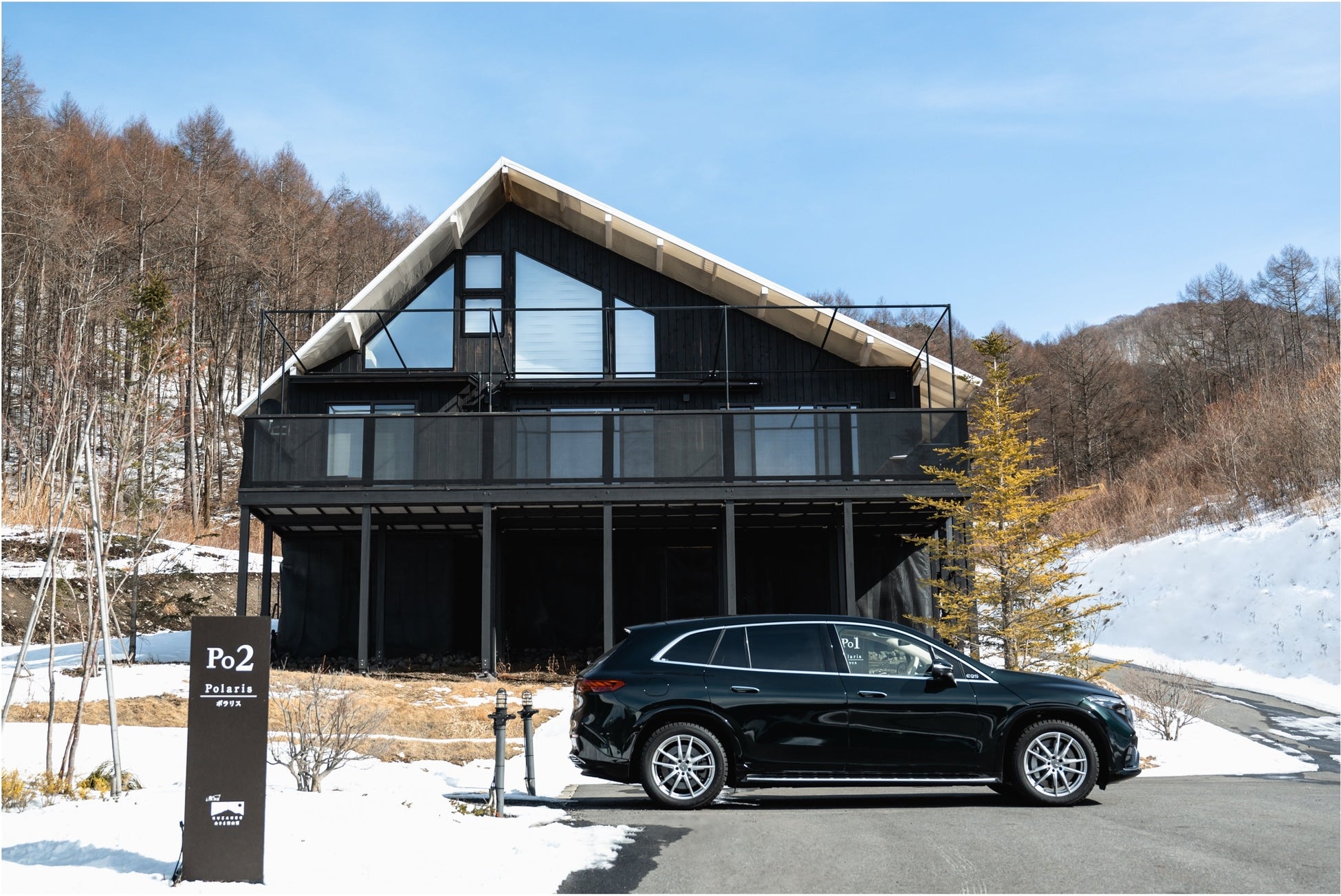 また、12月の北軽井沢エリアは積雪や路面凍結の可能性があるため、スタッドレスタイヤなど雪用タイヤのご準備をお願いしております。雪用タイヤの対応が難しい方にも安心してお越しいただけるよう、スタッドレスタイヤを装着したレンタカーを東京から往復でレンタルできるオプションを冬季限定でご提供します。車種は最新の6人乗りのEVセダン「Mercedes Benz EQS SUV」をご用意しております。ラグジュアリーEVならではの静かさとアクティブで力強いSUVらしい走りを体感しながら、冬の北軽井沢の自然を存分にご満喫ください。