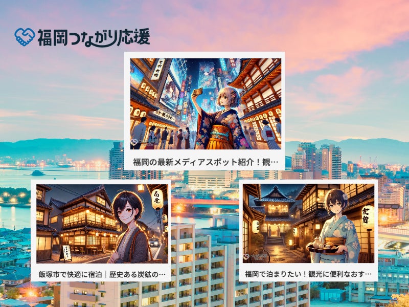 「福岡つながり応援」は、福岡県の自治体や地域団体の後援を得て、地域のPRと課題解決に取り組む官民連携のキャンペーンです。2024年11月1日よりスタートし、3か月間にわたり、福岡の観光資源や特産品を紹介するほか、地域の抱える課題解決を目的とした支援活動を展開していきます。この取り組みの一環として設立された「福岡つながりメディア」では、福岡の魅力を全国に発信するとともに、県内外の人々が地域に興味を持ち、繋がりを持てるような情報を発信します。