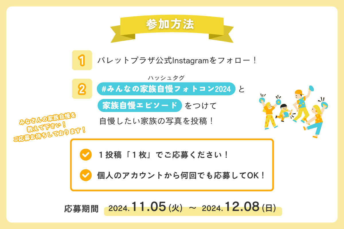 ・ 応募された写真の著作権は撮影者に帰属しますが、応募写真は一部パレットプラザに関する公式SNS(Instagram、X)および当社ウェブサイトで使用させていただく場合があります。