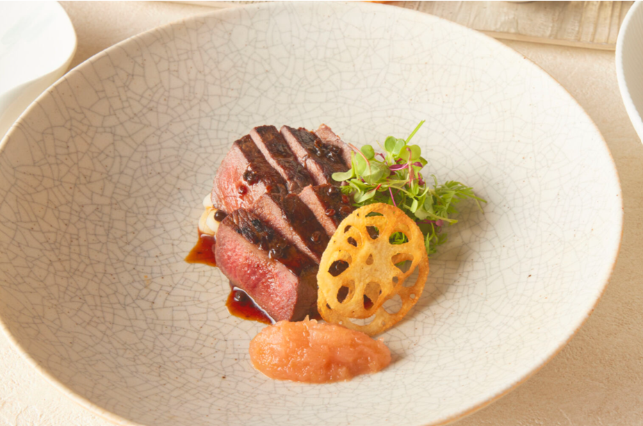 ジビエの美味しさが際立つこの季節に、脂がのった猪ロースのスモーク、旨味が凝縮された蝦夷鹿のロースト、赤味噌でじっくり煮込んだ蝦夷鹿など、クセが少なく食べやすい一品を揃えました。さらに、冬野菜をふんだんに使用し、里芋のマッシュポテトや零余子と薩摩芋の炊き込みご飯といった季節感あふれるお料理もご堪能いただけます。冬ならではの豊かな味わいを、落ち着いた空間でゆったりとお楽しみください。