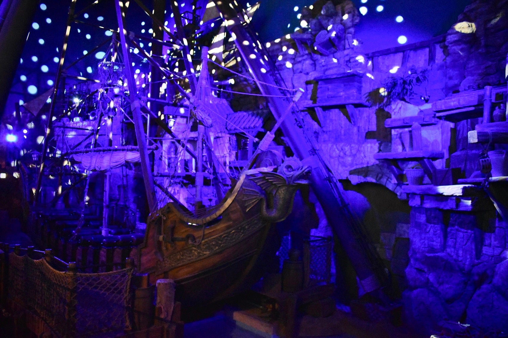 アトラクションの動きと音楽に合わせて、船体や周囲を照らす演出が加わり、より美しくスリリングにパワーアップしました!「スターアクアリウム」開催期間中は、水族館ご入場とアトラクションを2回ご利用いただけるお得なセット券もWEBで販売。この機会にぜひご利用ください!