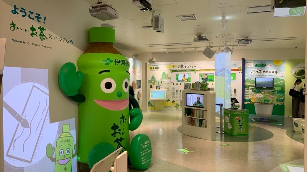 時代や人々の生活の変化に寄り添ってきた「お~いお茶」の現在までの歩みを展示しています。入場無料。