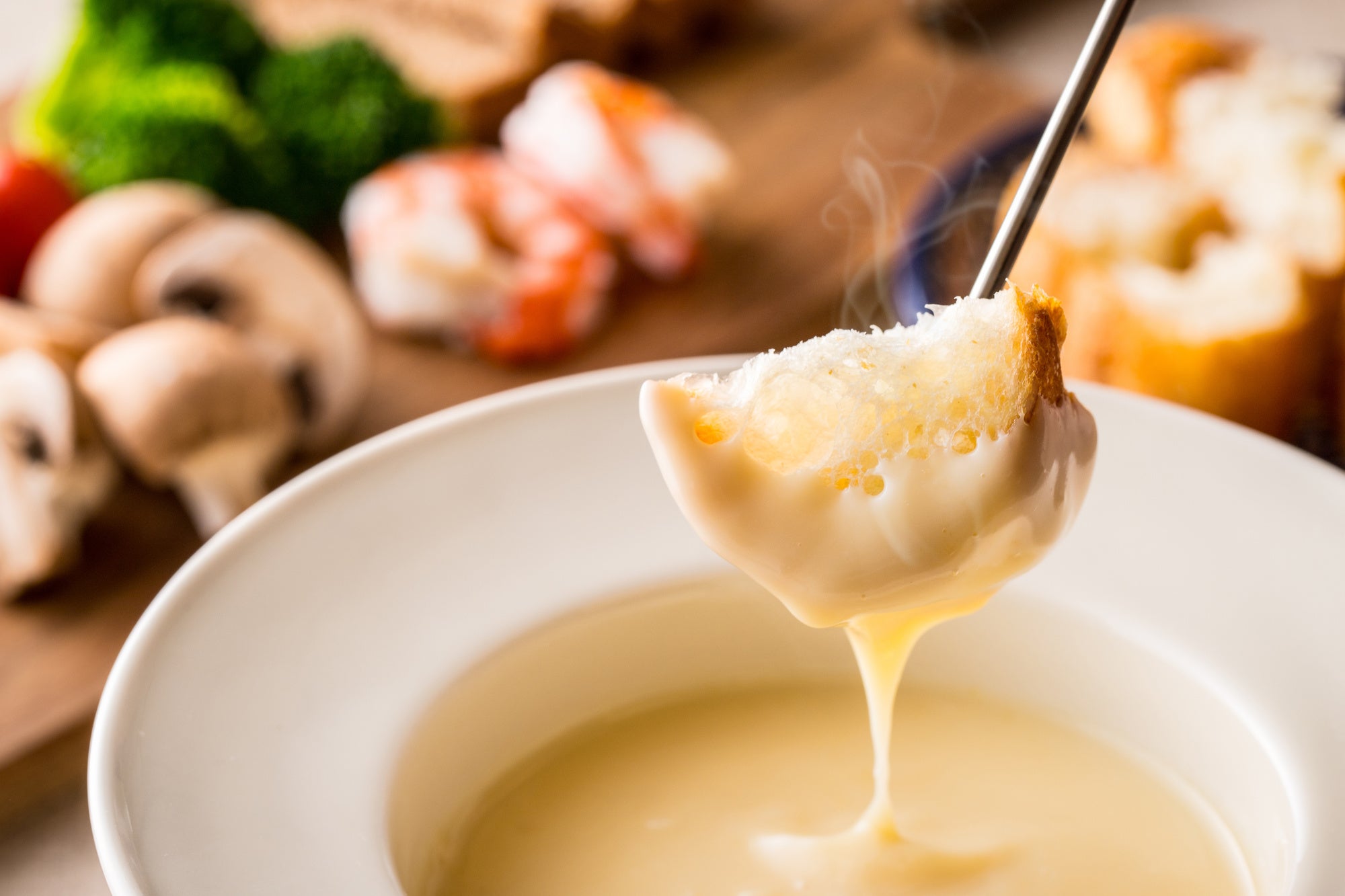 『クリスマスキャンペーン』の期間中は、プレミアムBBQプランで提供しているアヒージョをチーズフォンデュに変更することも可能です。