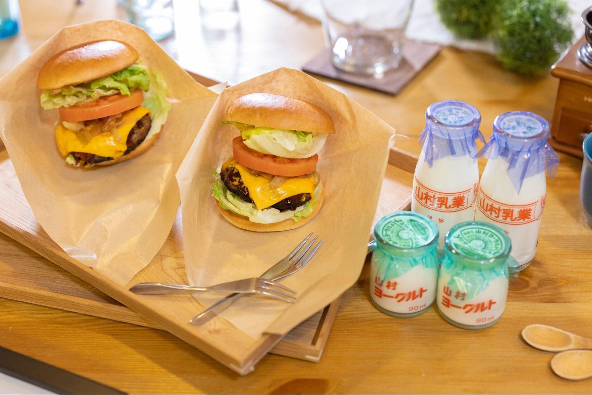 朝食のハンバーガーのパティはジューシーな松阪牛をご用意しています。