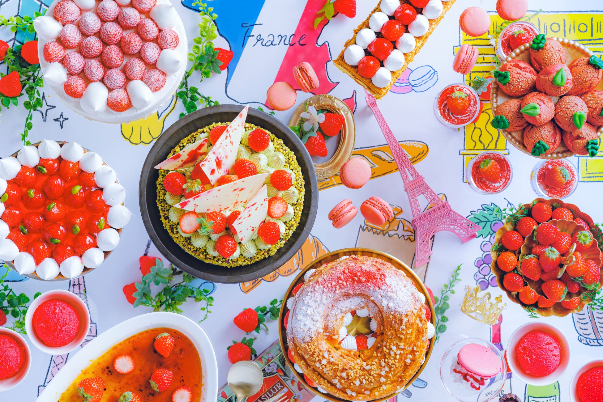 そのほかにも『クレームブリュレ』や、『シュークリーム』など、数々のフランス・パリ発祥のスイーツが登場します。ホテルのシェフパティシエが趣向を凝らして生み出した、「フランス・パリ×あまおう」スイーツの数々を心ゆくまでお愉しみください。