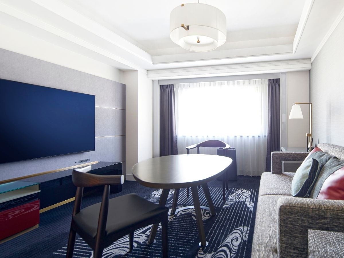 本プランでは、コーナースイートまたはデラックスダブルの客室からお選びいただけます。コーナースイートは2024年にリニューアルした人気の客室。ベッドルームとリビングを備えた60.5㎡の広々とした空間は、日常から離れてホテルならではの贅沢な時間をお過ごしいただけます。