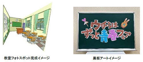 甘酸っぱい青春を体験できるコンテンツとして、六甲ガーデンテラスのエリア内各所に、写真・動画映えする青春フォトスポットを設置します。学校の教室を再現した室内型フォトスポットや、相合傘をイメージしたベンチ、青春の一コマを描いた黒板アートの展示を行います。思い思いの懐かしのポーズで撮影をお楽しみいただけます。
