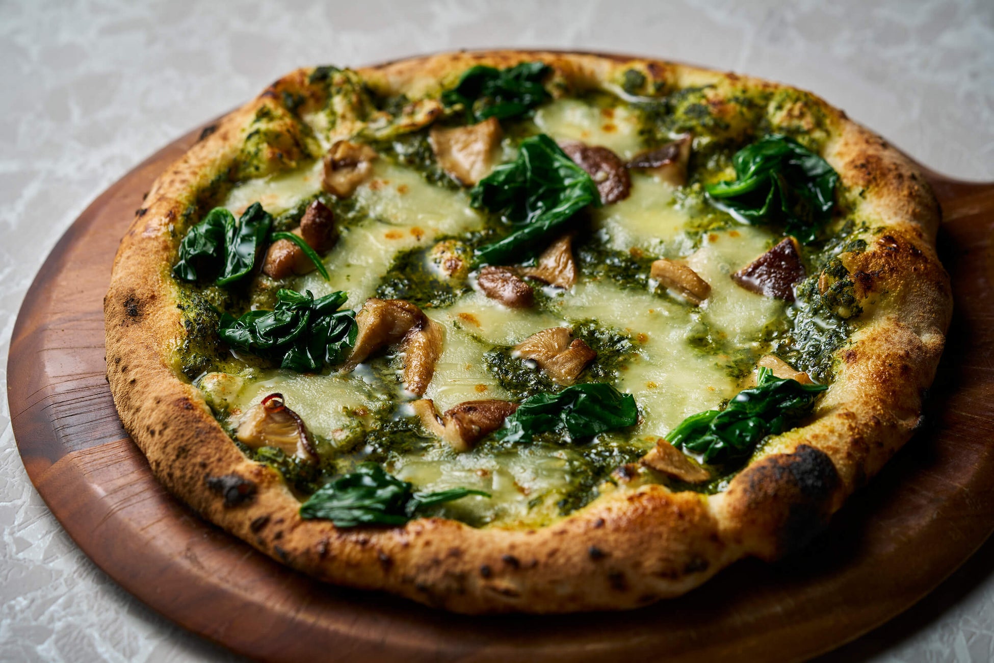 大和寒熟ほうれん草と奈良原木しいたけのピザ