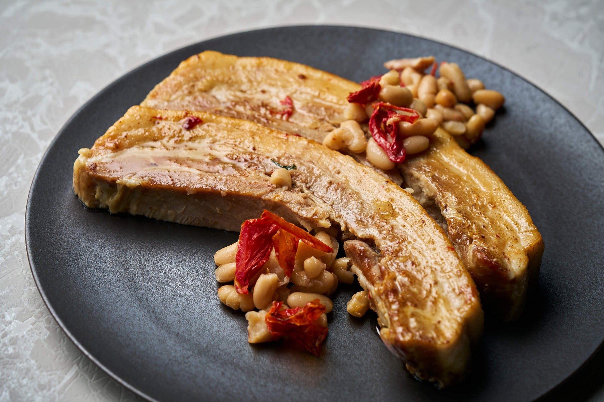 奈良県産ヤマトポークのバラ肉を、白いんげん豆と共にじっくり煮込んだ料理。奈良漬けをコンディメントとして添え、まろやかさと塩気が絶妙に調和します。特別な風味が広がる、心温まるひと皿です。