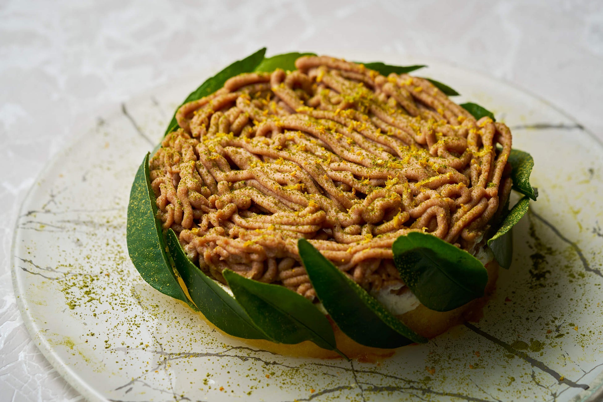 栗をふんだんに使ったモンブランに、奈良県産の大和橘が香り高く絡みます。栗のまろやかで優しい甘さに、大和橘のさっぱりとした柑橘系の香りが加わり、シンプルながらも奥深い味わいが楽しめます。季節感あふれる、特別なデザートです。