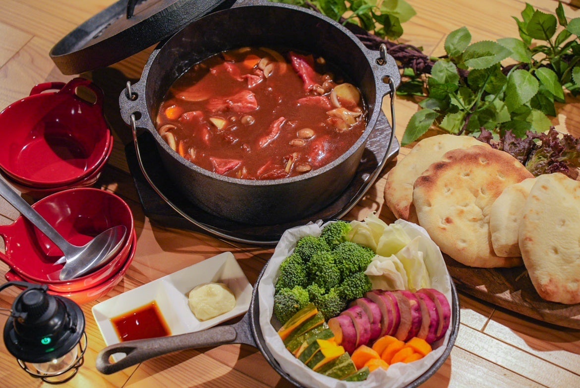 宍粟市で捕れた猪肉を使用した【牡丹鍋】/ダッチオーブンで柔らかく煮込んだ【ビーフシチュー】