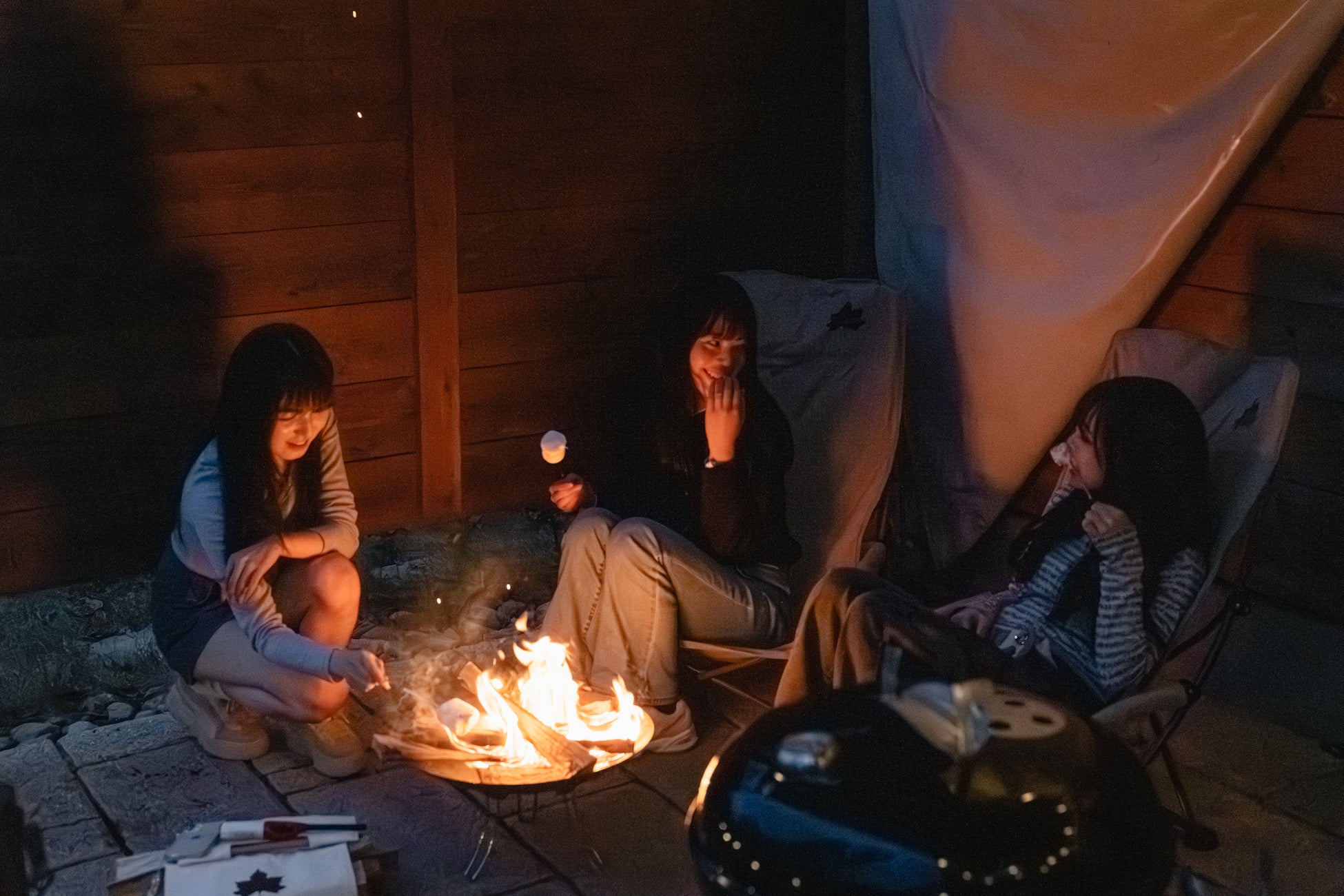ここでしか味わえない“非日常”空間の中で、揺らめく炎をぼーっと眺めたり、炎を眺めながら語らうひとときを過ごせば、焚き火が人々を結び付け、心を癒す魔法のような存在であることをきっとご体感いただけます。