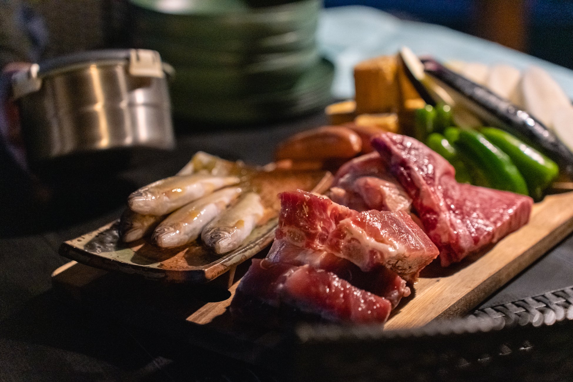 ご夕食の時間には宍粟市で採れた食材を使用した【贅沢BBQ】をご用意しております。