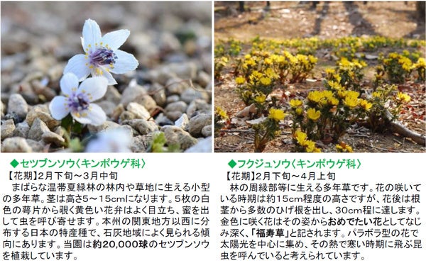 この時期の六甲山はまだ厳しい冬の寒さに包まれていますが、約50平方メートルと日本有数の植栽面積を誇るバイカオウレンが凜と咲く様子からは、春の息吹を感じることができます。バイカオウレンは、牧野富太郎博士が、生涯愛した花として知られています。