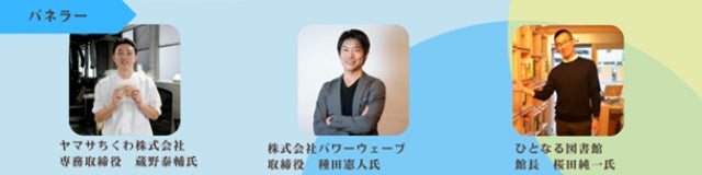 パネラー: 蔵野泰輔氏(ヤマサちくわ株式会社専務取締役) 桜田純一氏(ひとなる図書館館長) 種田憲人氏( 株式会社パワーウェーブ取締役)