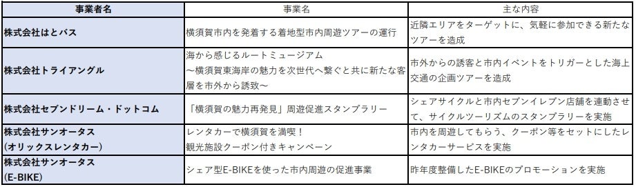 横須賀市では、今年度「よこすかルートミュージアム」の推進に向け、二次交通の整備など、新たな市内の観光周遊を促進するための補助事業を募集し、5件の事業を採択しました。