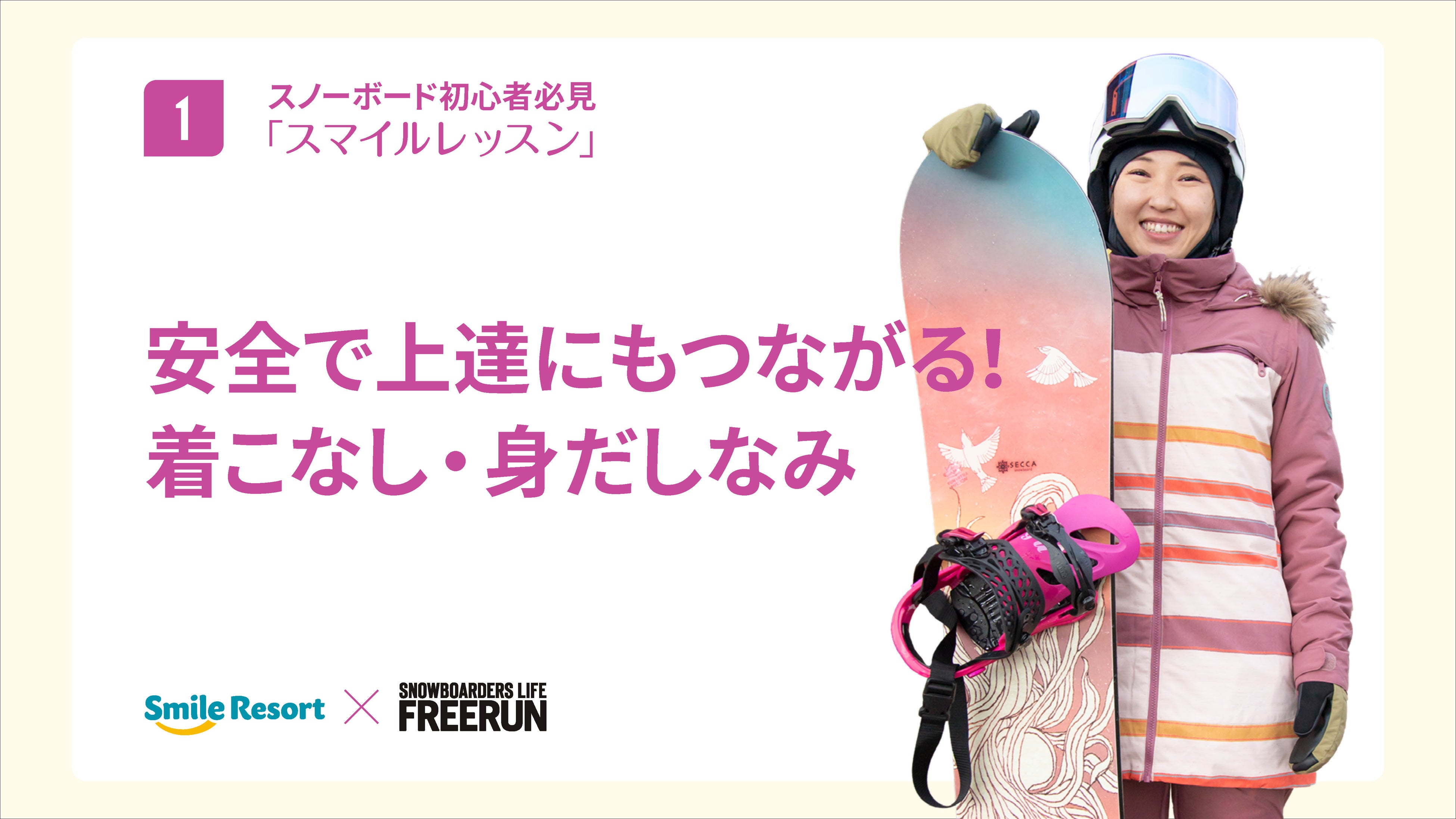 「無料!スノーボード教室 スマイルレッスン」はスノーボード初心者の方や、もっと安全に楽しみたい方を対象にした、無料の動画レッスンです。各30秒~60秒の9本の短編動画で、スノーボードの基本動作やマナーを分かりやすく解説。基礎をしっかり固めたい方や、もっとスムーズに滑りたい方にもおすすめです。スマートフォンで気軽に視聴できるので、滑る前のイメージトレーニングはもちろん、安全に滑るためのコツや、ゲレンデで困ったときにも役立ちます。なお、舞子スノーリゾートではスマイルレッスンのリアル版も開催する予定です。