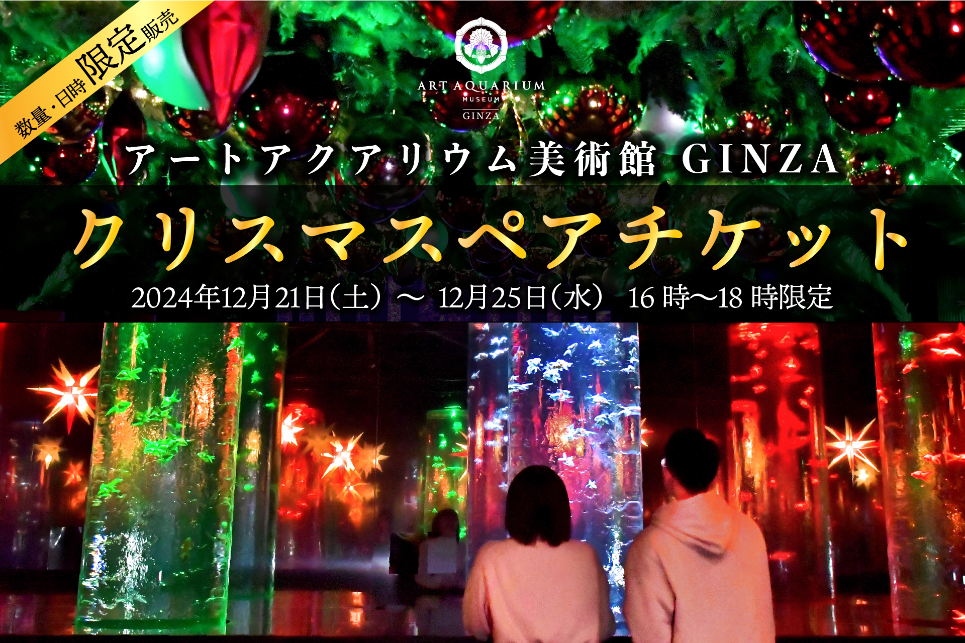 金魚が泳ぐ水槽作品を光彩や香り、音楽で演出するアートアクアリウム美術館の、1年で最も煌めく特別な1か月。星降る金魚の回廊や、クリスマスイルミネーションが煌めく提灯リウムなどアートアクアリウムならではのホリデーシーズンをお届けします。