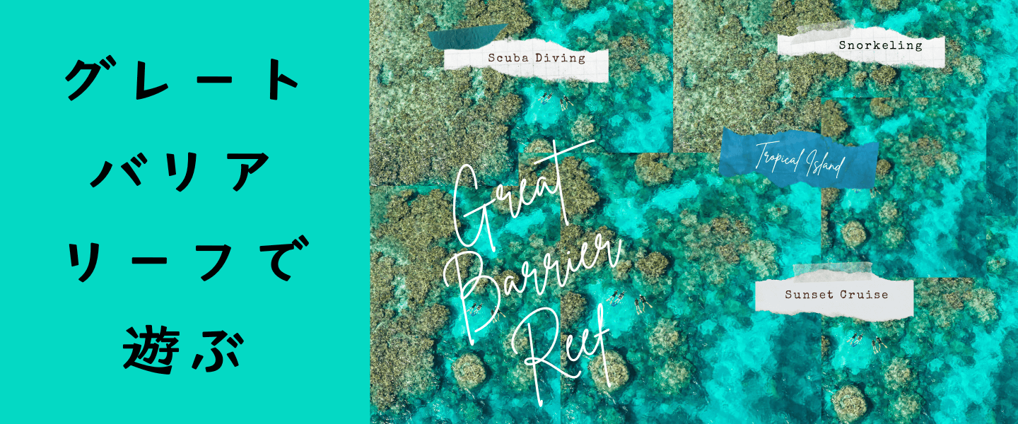 複数の会社がクルーズを運行していて気軽に行けるグリーン島やフィツロイ島など「島に行く」体験や、1日にたったの100人しか上陸できないフランクランド島など「無人島に行く」、360度サンゴ礁と熱帯魚に囲まれた「アウターリーフに行く」、空から息を呑むほど美しいグレートバリアリーフの景色を眺める「ヘリコプター遊覧飛行」など、グレートバリアリーフを満喫できるアクティビティを数多くご紹介。