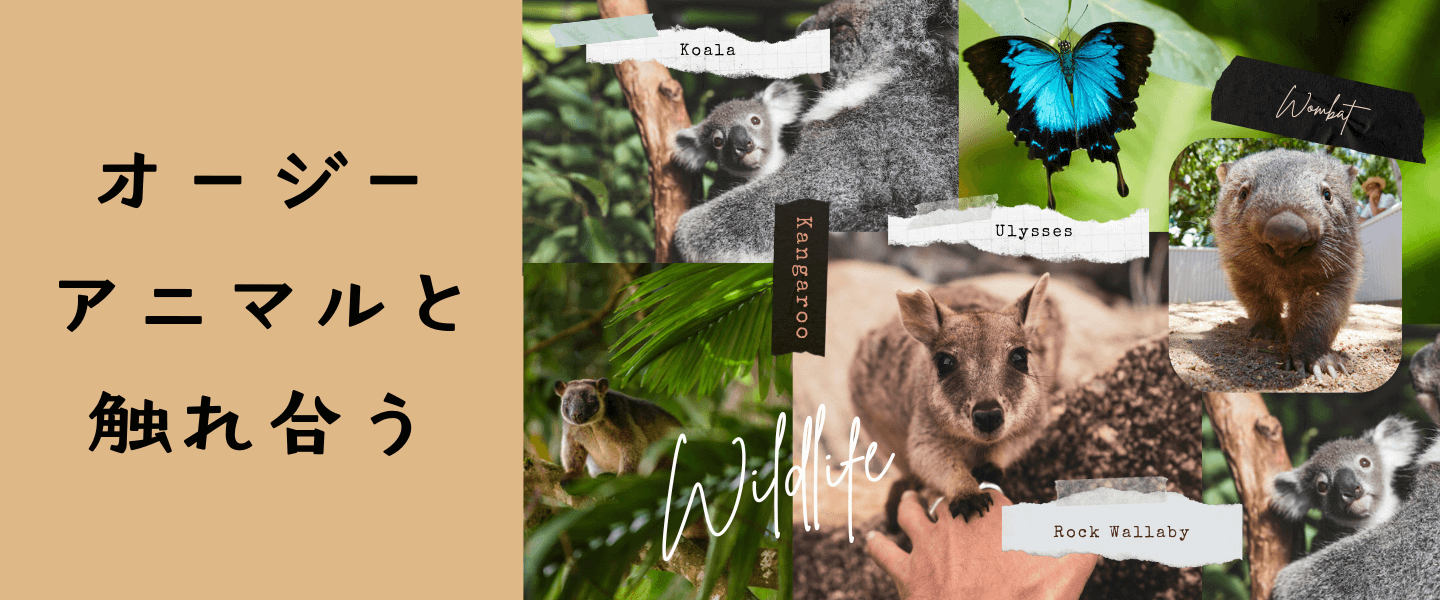 間近でコアラを見ながらオージーブレックファーストを楽しめる「コアラと朝食」、3回見ると幸せになれると言われている目を引く綺麗な青色の「ユリシス・バタフライを見る」、エサをあげながら間近でゆっくり観察できる「カンガルーをナデナデ」、大迫力で見た目も音にも驚きの連続な「ジャンピングクロコダイルを見る」、穴掘りとお昼寝が得意でノコノコ歩く姿が可愛いらしい「ウォンバットに会う」など、オーストラリアならではの動物も驚くほどの至近距離で見たり触れたりすることができます。