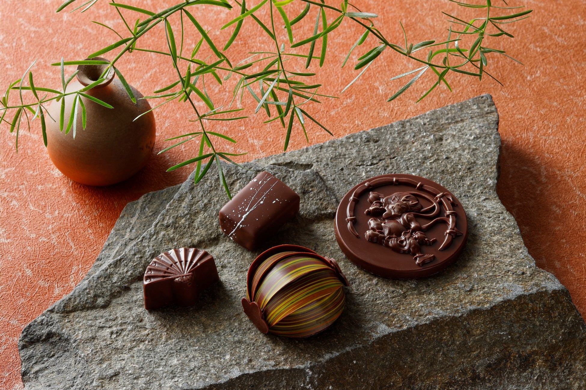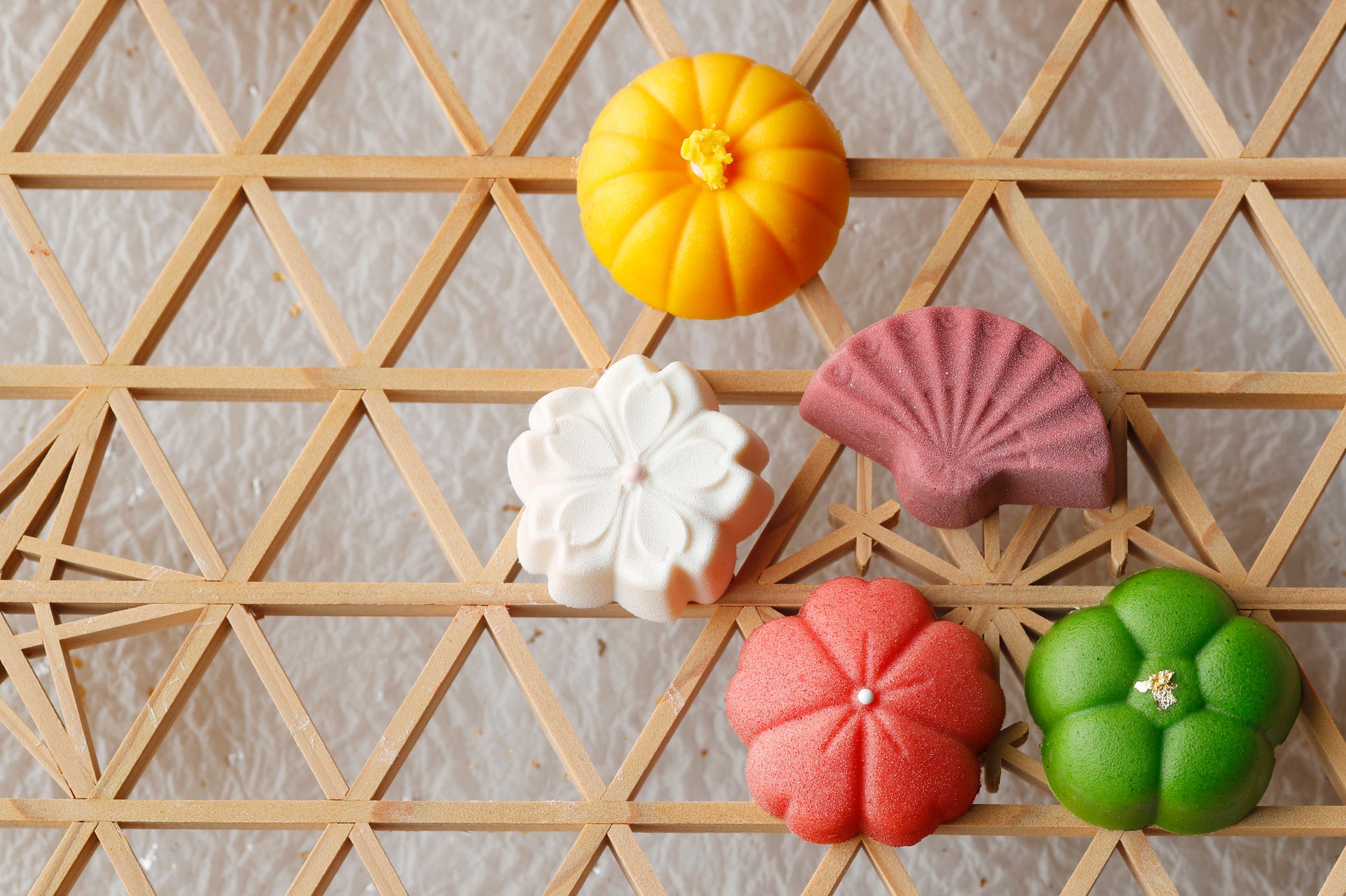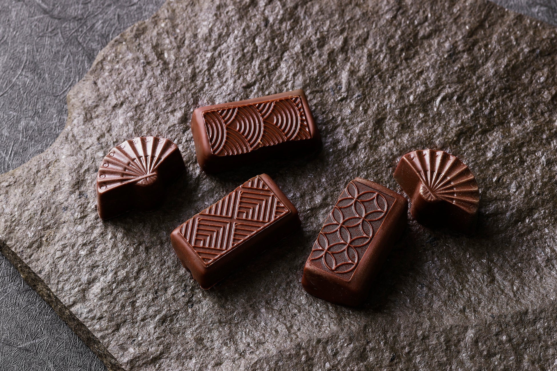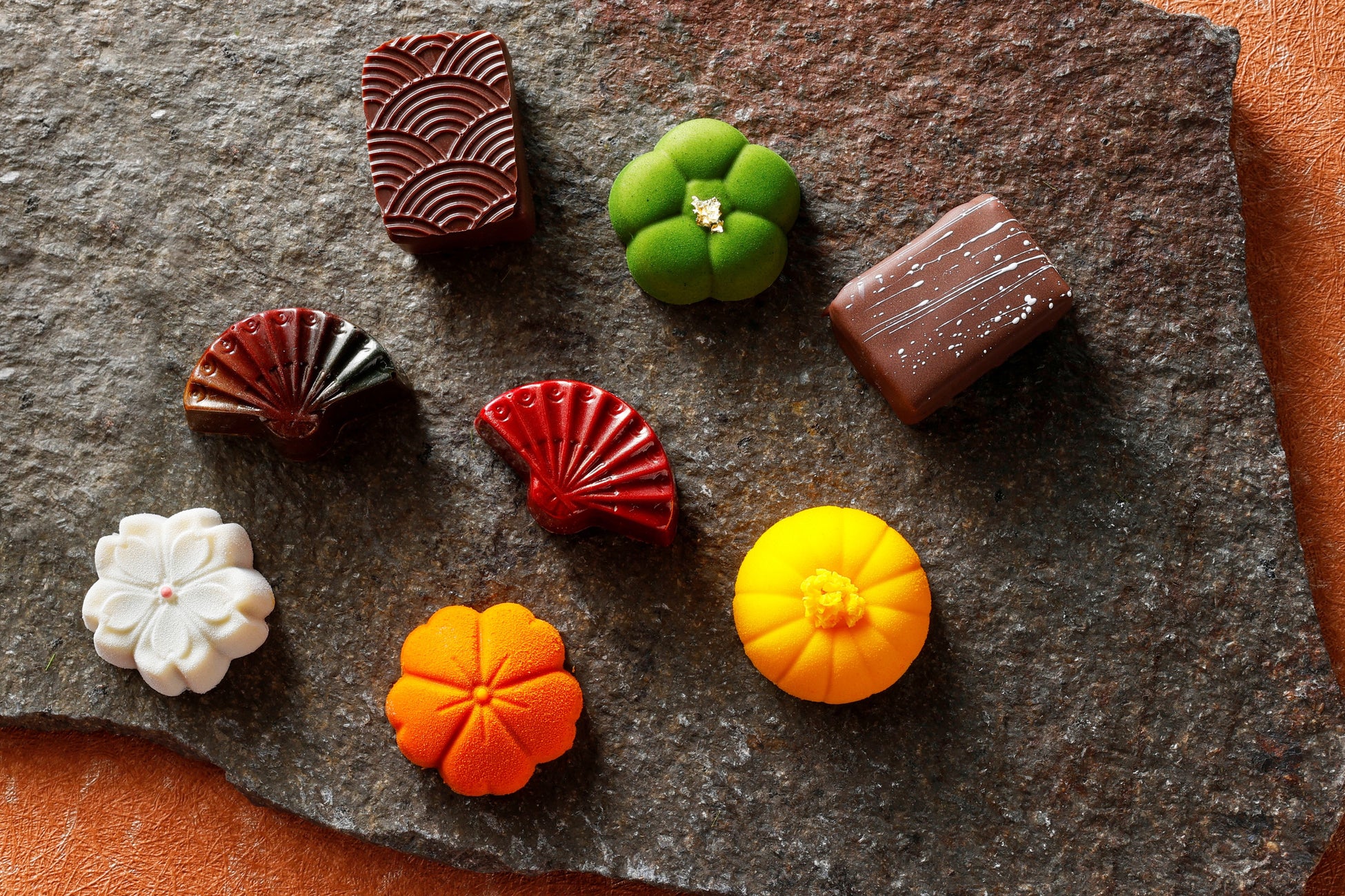 華やかな舞を想像させる扇型や、まるで上生菓子のようなボンボンショコラなど、ひと箱にさまざまな和のエッセンスが込められています。