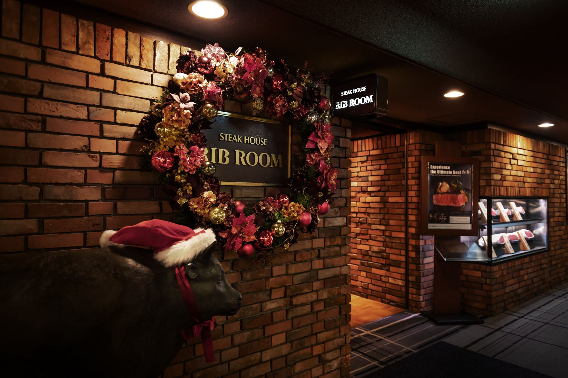 日本各地からの銘柄牛を常時6種類取り揃える老舗ステーキハウスでは、クリスマス限定の前菜やデザートがついた、特別フルコースをご用意いたしました。メインのステーキは、鹿児島黒牛や宮崎牛、佐賀産和牛など、銘柄牛もお選びいただけます。