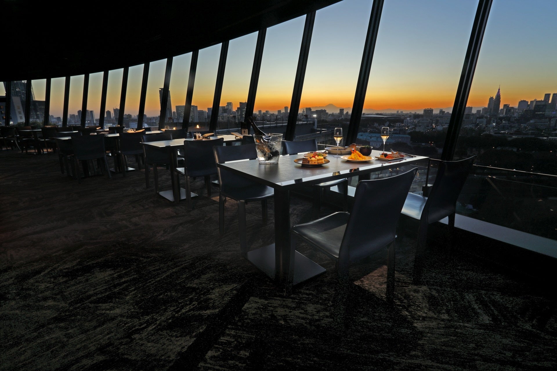 東京の名所の数々を360°パノラマの眺望で愉しめる、絶景ビュッフェレストラン。