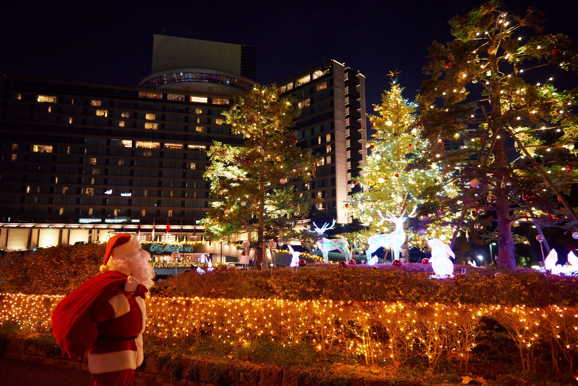 いよいよやって来たホリデーシーズン、都内ホテル最大級・13万球のウィンターイルミネーションが約2万坪の敷地を包み込むホテルニューオータニでは、正面玄関や日本庭園、館内レストランに大小あわせて30本以上のクリスマスツリーが登場し、クリスマスムードを盛り上げます。