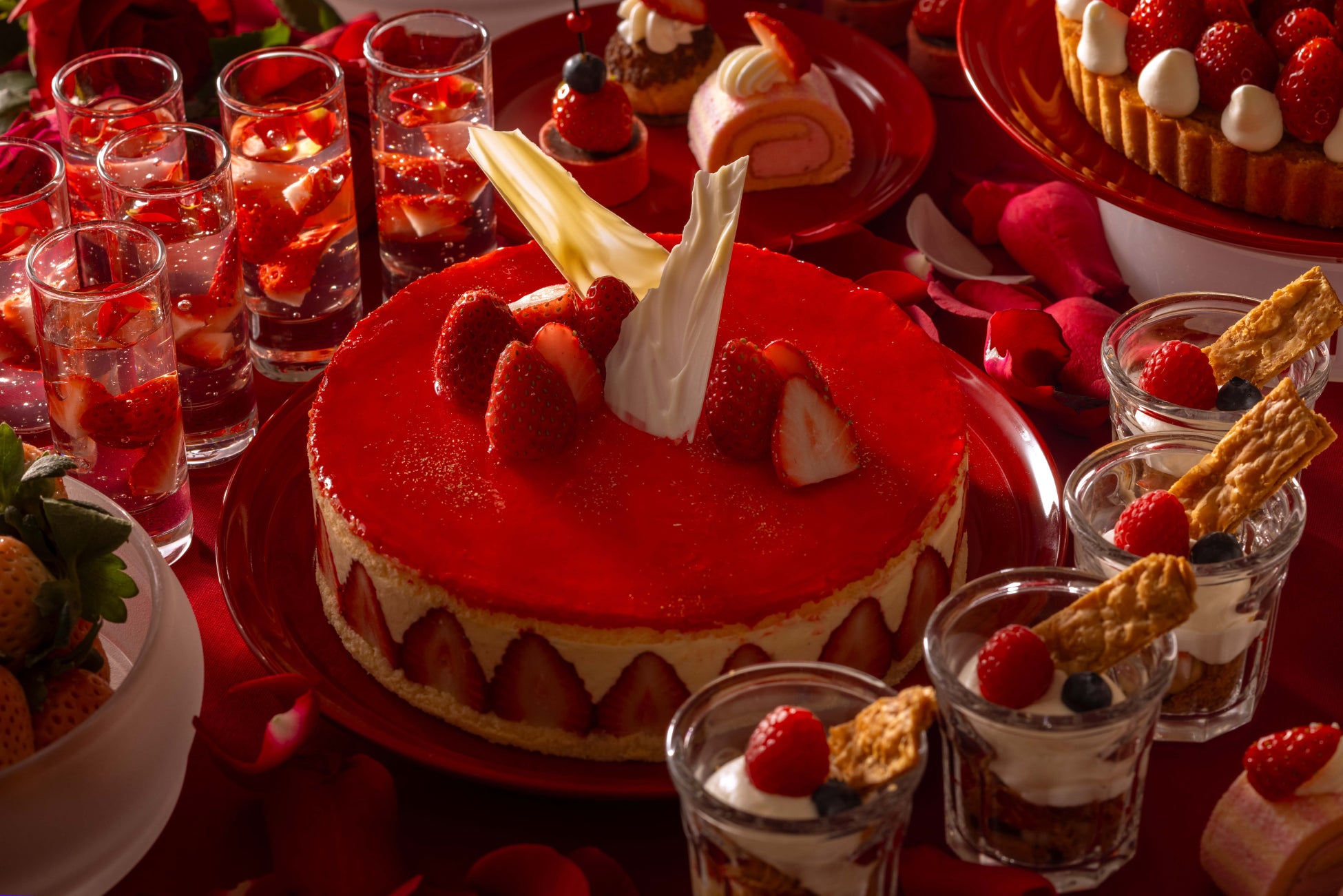 昨年好評をいただいた苺をテーマにしたデザートブッフェを今年も開催。フレッシュな苺を使用したスイーツを多数ご用意いたします。しっとり焼き上げたスポンジにたっぷりの生クリームと苺をサンドした“ショートケーキ”、濃厚なカスタードクリームと甘酸っぱい苺が絶妙な“フレジエ”、ローズの香るジュレの中で美しく苺が浮かぶ“ストロベリージュレとローズジュレ”など、苺の魅力満載のラインナップ。苺好きに至福の時間をお届けします。