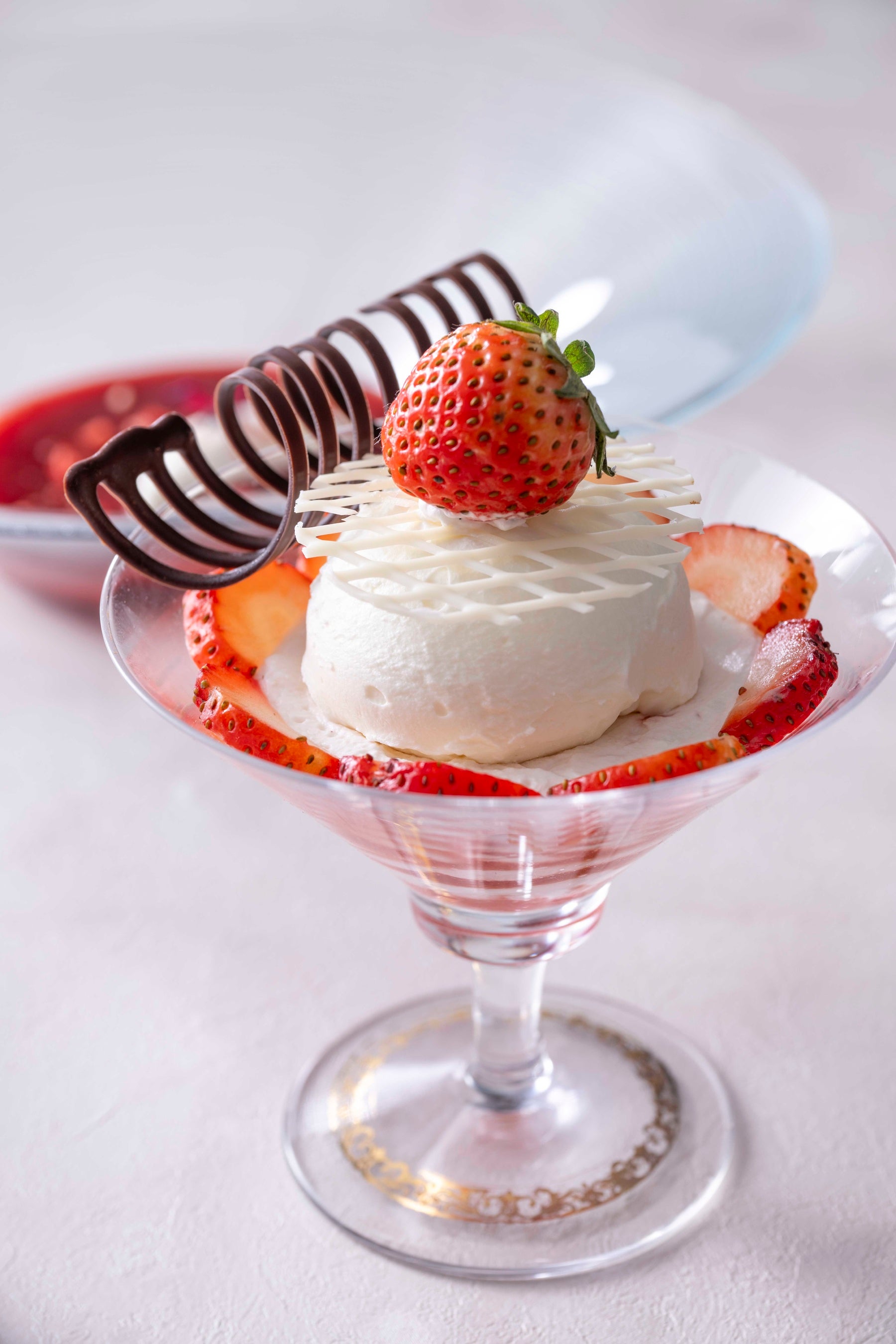 初のスイーツコースのテーマは「苺」。色鮮やかで甘みのある国産苺を贅沢に取り入れたスイーツが揃います。