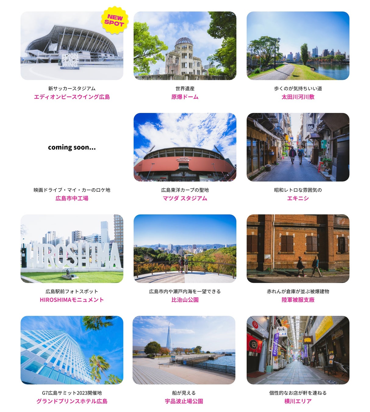 広島の歴史や文化、平和に関するスポットや、スタジアム、川や海など自然を感じられるスポット、話題のはしご酒エリアなど、広島の今を体感できるコースです。