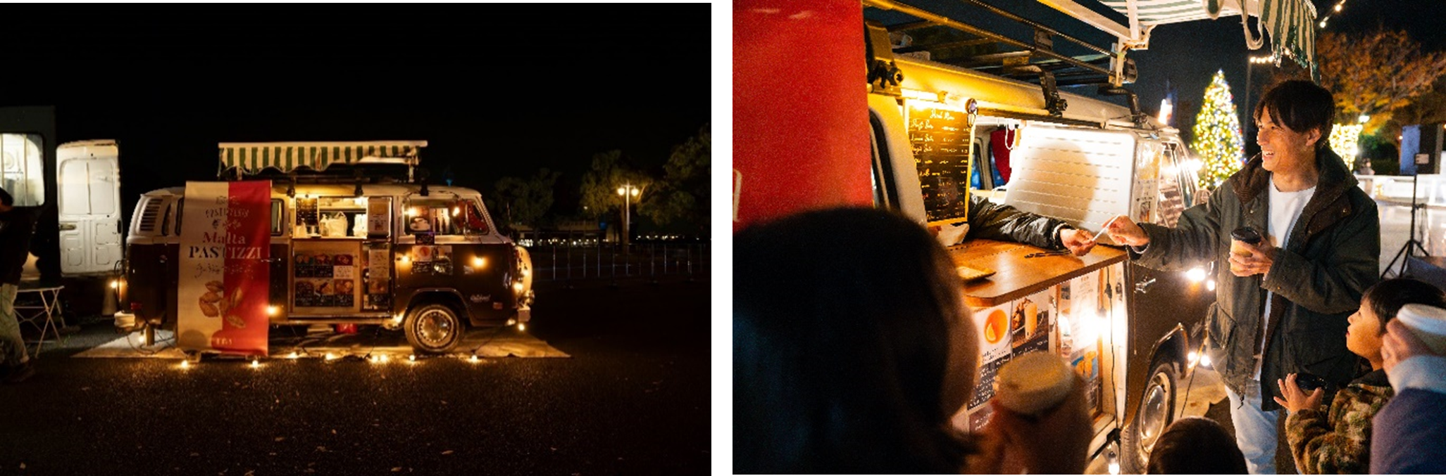スケートパークの周りには多種多様なグルメが集い、身体が温まるカフェモカやクリスマスケーキ、さらにはクリスマスバーガーなど、様々なメニューも販売いたします。また、期間限定でサントリー ワールドウイスキー 「碧Ao」 海薫るハイボールブースが登場!海を漂うように悠々とした気分が愉しめる 碧Ao海薫るハイボールをご提供させていただきます。
