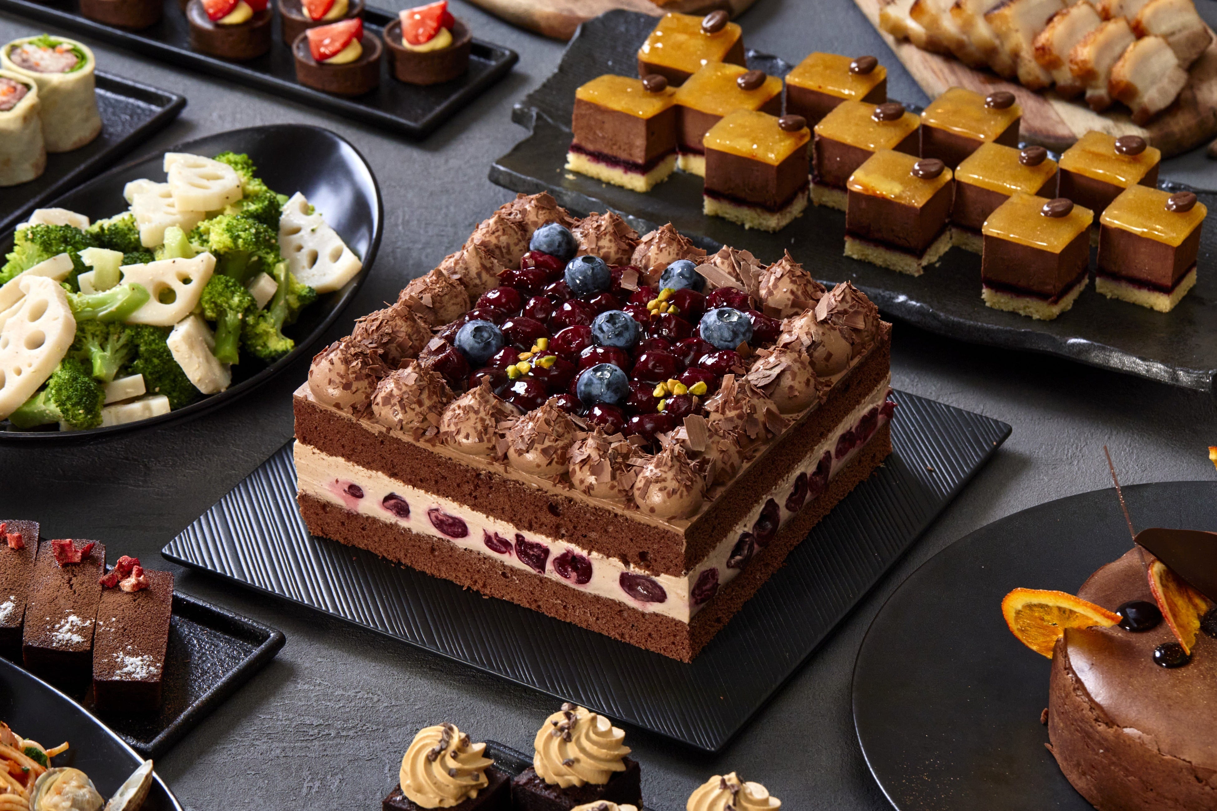 2025年のスタートを華やかに彩るスイーツ&ランチディナービュッフェは、多彩なアレンジの贅沢チョコレートスイーツをお楽しみいただけます。チョコレートと相性の良い、酸味のあるフルーツや香り高い茶葉を合わせたスイーツも幅広くラインナップ。さらに今回は、とろけるチョコレートを存分に堪能できるチョコレートファウンテンが登場。流れる濃厚チョコレートに、フルーツや焼き菓子をディップしながら味わえる体験型スイーツとして、大人から子供までお楽しみいただけます。また、和洋中のバラエティー豊かな料理メニューの中でも人気の「せいろ蒸し」は、冬の食材を豊富にご用意。食材本来の優しい味わいが楽しめる蒸し料理として、出来立てをお届けします。シェフが腕を振るうグルメの数々と、とろけるチョコレートスイーツで至福のひとときをお過ごしください。