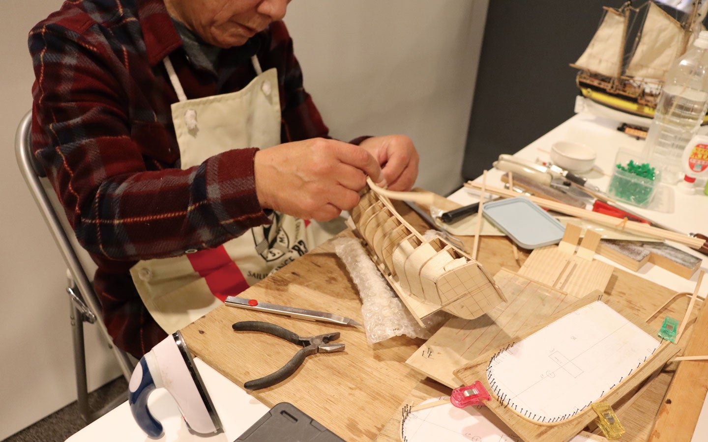 会期中の土曜・日曜には、講師による帆船模型製作実演イベントを開催。