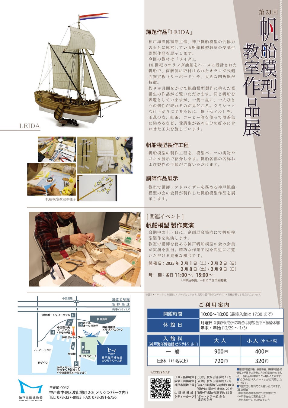 神戸海洋博物館では、2025年1月28日(火)から2月9日(日)まで、企画展「第23回 帆船模型教室作品展」を開催いたします。