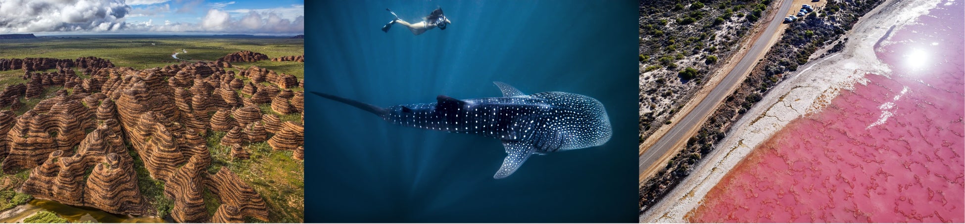 世界遺産の海と奇岩群、鮮やかなピンクの湖、ジンベイザメやクオッカとの出会い