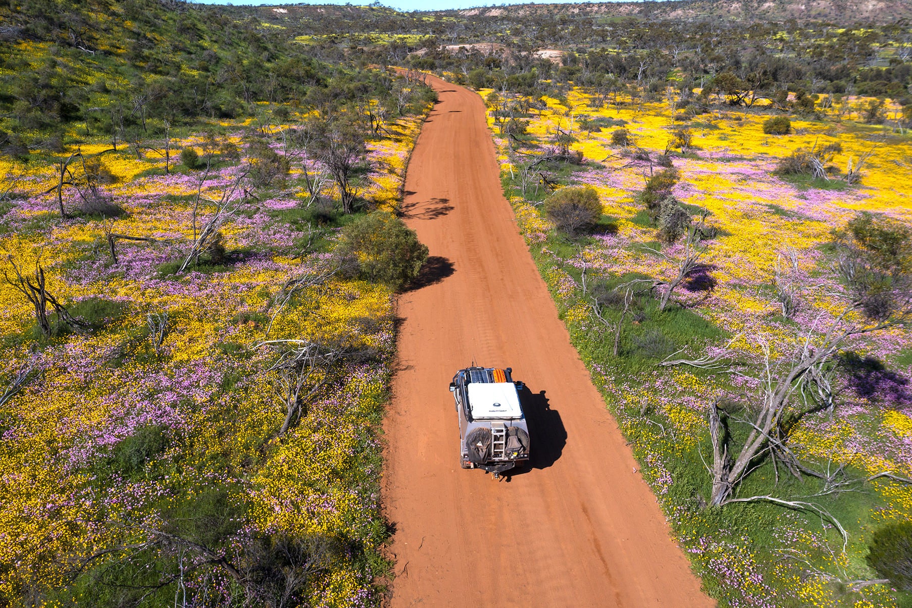 西オーストラリア州の春の到来を告げるワイルドフラワー。多様な自然環境で12,000種を超えるワイルドフラワーが自生し、その約8割が西オーストラリア州の固有種です。7月から12月中旬まで、鮮やかな花前線が北部から南下します。州内に11あるワイルドフラワートレイルの一つ、「エバーラスティング・トレイル」では州都「パース」からインド洋の海岸線沿いを北上するブランドハイウェイ、または「ムレワ」へと内陸を走るグレートノーザンハイウェイをドライブしながらワイルドフラワー巡りが楽しめます。「コールシーム自然保護区」や「ムレワ」周辺では、ピンク、イエロー、ホワイトと色とりどりの可憐な花“エバーラスティング”が一面を彩り、圧巻のフラワーカーペットを鑑賞できます。その他、カンガルーポーやパープルスターフラワー、バンクシア、ハケア、レシュノルティア、リースフラワーなど西オーストラリア固有ワイルドフラワーを数多く見ることができます。
