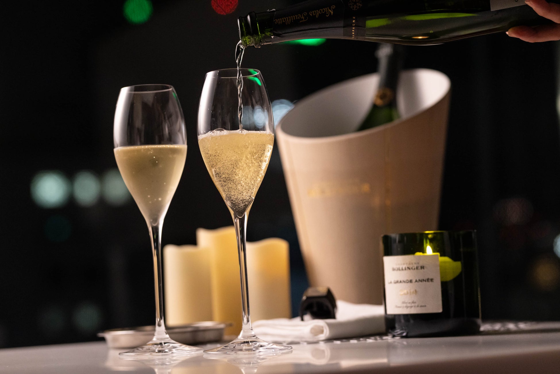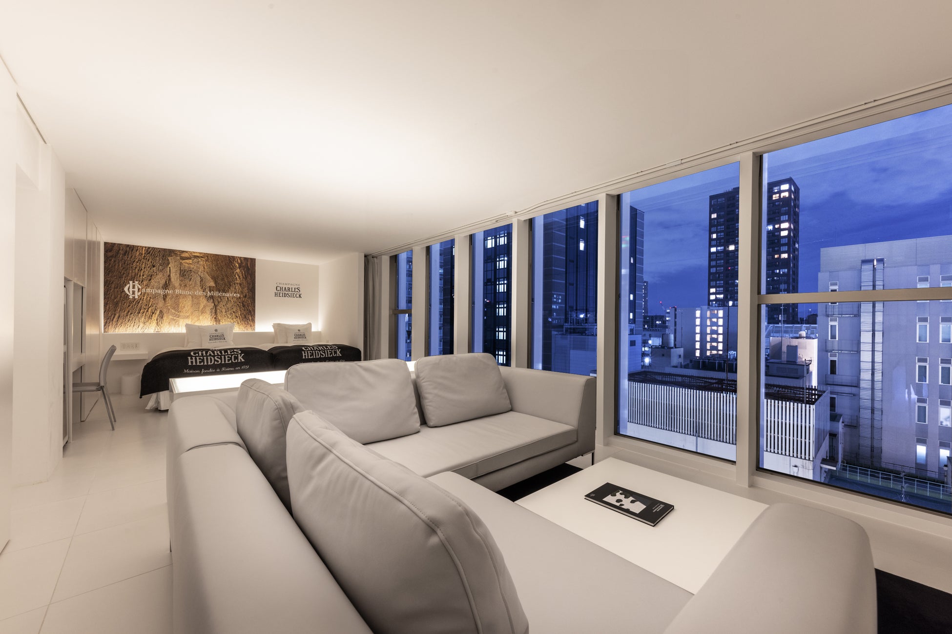 11の名門シャンパーニュ・メゾン(生産者)に働きかけを行い正式に許可を得た、世界初となるオフィシャル・シャンパン・ホテル。11のメゾンは、「ボランジェ」「シャルル・エドシック」「レア・シャンパーニュ」「テタンジェ」「ジョセフ・ペリエ」「ニコラ・フィアット」「ラリエ」「ジャン・ヴェッセル」「テルモン」「キュペルリー」「ドゥモアゼル」。11室ある客室全てをメゾンと共に造り上げており、世界的建築家・小川晋一氏が手掛けたミニマルで洗礼されたデザインの客室では、各メゾンの歴史や想い、世界観、シャンパーニュ文化を体感いただけます。鮨とシャンパーニュのマリアージュをお楽しみいただける、カウンター10席の鮨レストラン「AWA SUSHI 泡鮨」を併設。