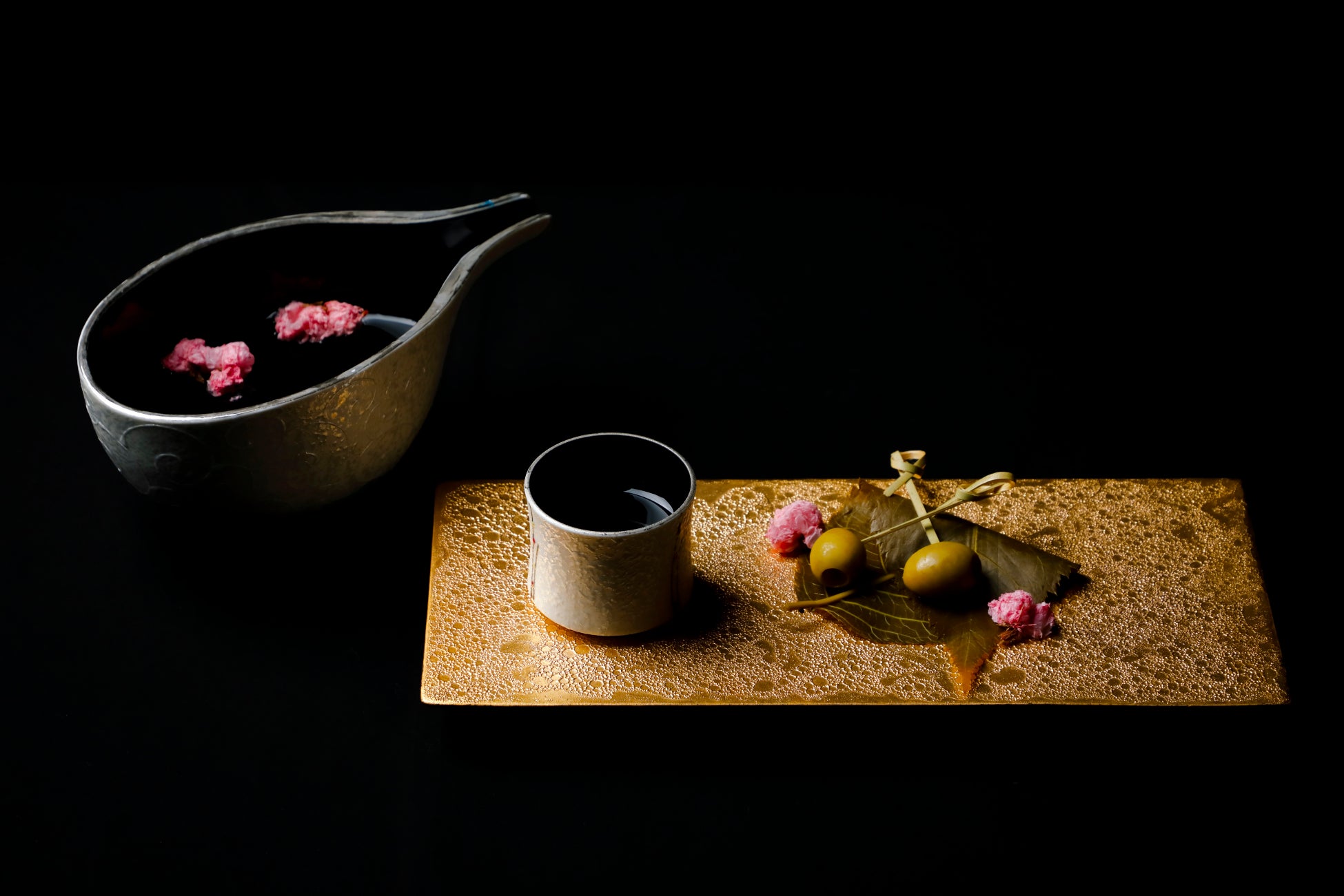 水盤に面した幻想的な空間の「ザ バー」では、桜の葉の香りを思わせるズブロッカに辛口のシェリー酒を合わせた「フルール・ドゥ・スリジエ」、桜餅のような上品で甘い香り漂うジャパニーズクラフトジンと日本酒をマティーニスタイルで楽しむ「挿頭草(かざしぐさ)」と、桜をテーマにしたカクテル2種をご用意いたします。また、新緑の季節の訪れとともに、ウォッカをベースに黒豆ほうじ茶とエスプレッソが溶け合う「黒豆ほうじ茶のエスプレッソマティーニ」や、瑞々しいフレッシュキウイを贅沢に使用した「ゴールデンキウイのマティーニ」が登場。春の夜のバータイムを優雅に演出いたします。