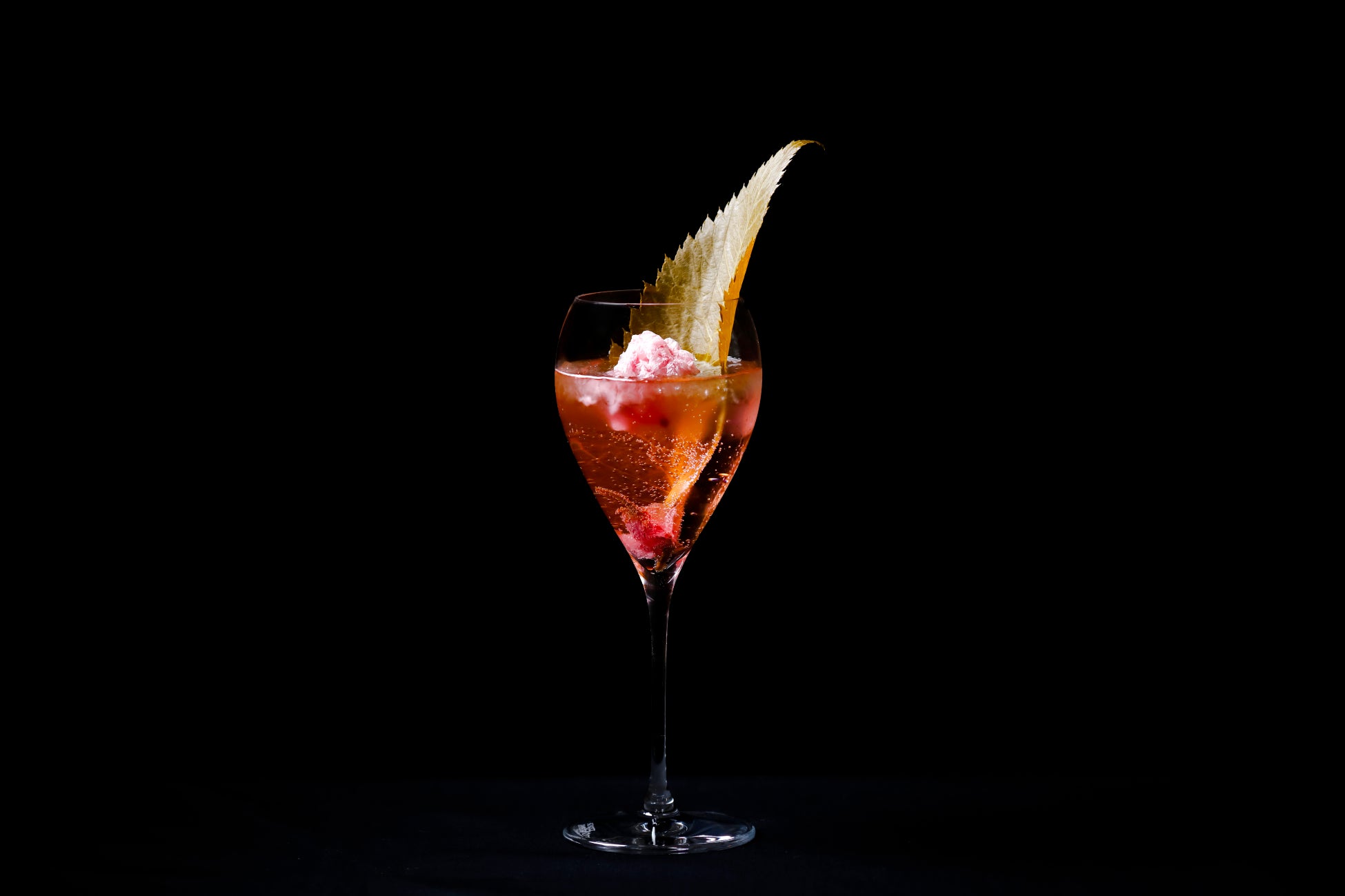 桜の葉の香りにも似たバイソングラスを香り付けに使用したウォッカ「ズブロッカ」と辛口のシェリー酒に、華やかな桜のリキュールを加えたカクテル。ふわりと漂う桜の香りとともに、桜餅のような味わいが口の中に広がります。