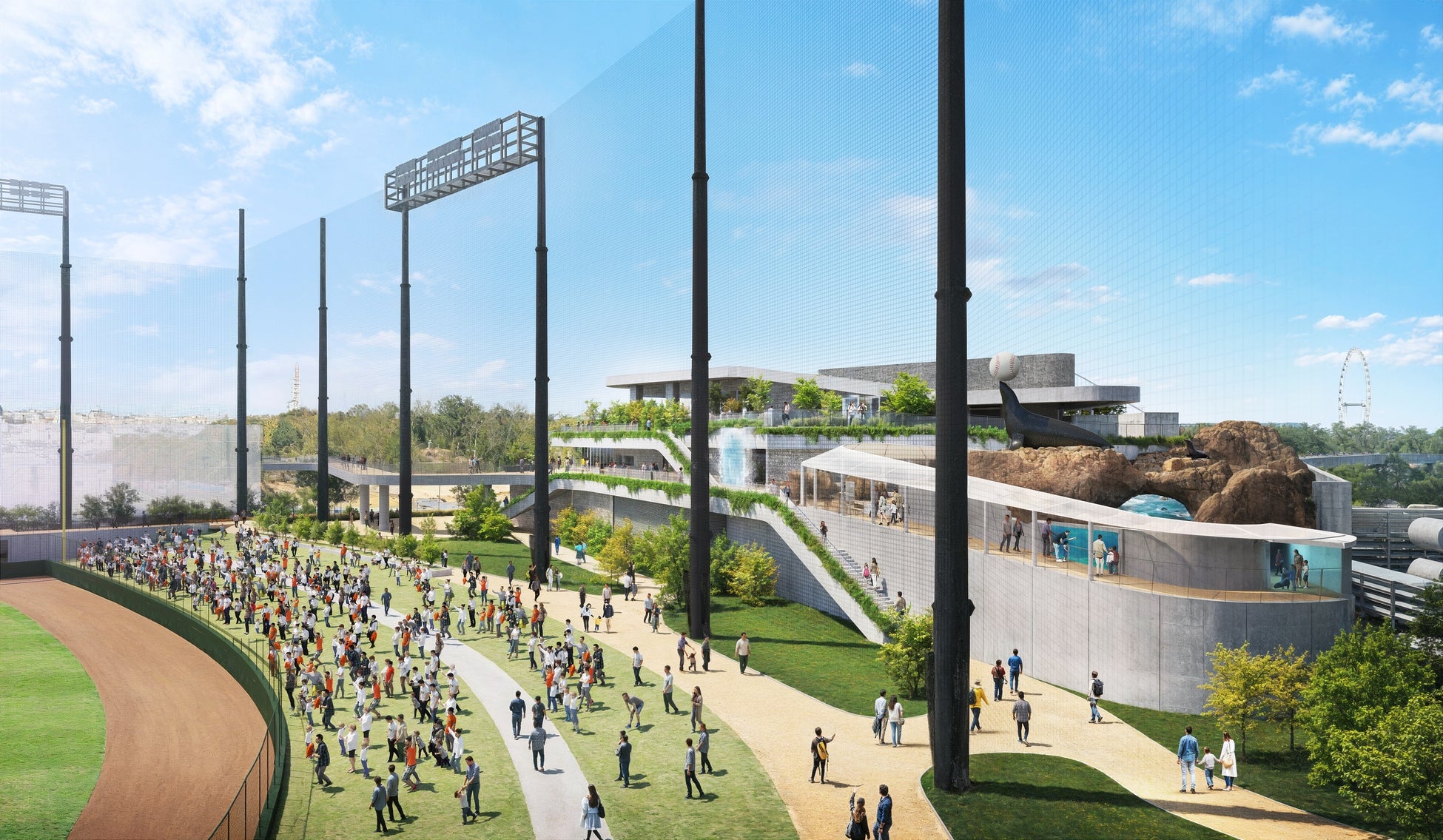 色とりどりで形もさまざまなチューリップが春の訪れを祝うように開花します。チューリップが咲くと浮かび上がるデザインは毎年変わります。